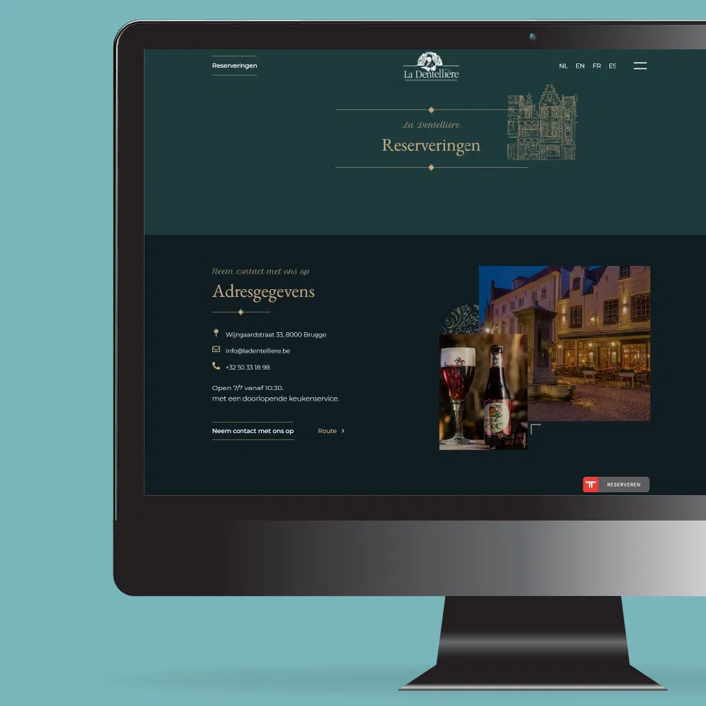 Voor La Dentellière aan het Minnewater in Brugge ontwikkelden we een website die hun culinaire traditie en historische charme weerspiegelt — gebruiksvriendelijk, sfeervol en trouw aan hun unieke eetervaring.