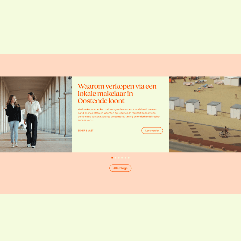 Onder de motorkap zorgt de Zabun-integratie ervoor dat elk nieuw pand automatisch in de juiste stijl op de website verschijnt, terwijl het blogplatform Signatuur volledige controle geeft over hun contentkalender. Het resultaat is een platform dat niet alleen mooi oogt, maar ook zelfstandig meegroeit met het bedrijf.