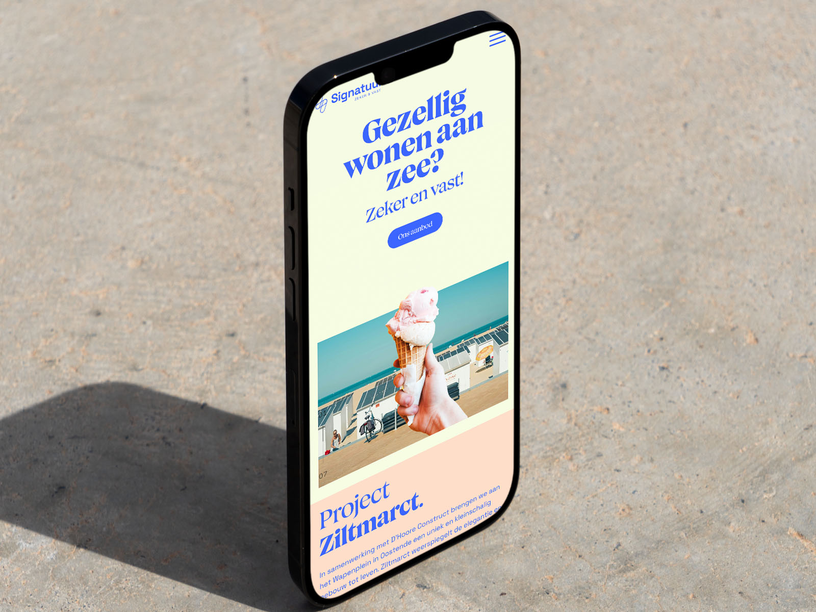 Signatuur stond voor een volledig nieuw hoofdstuk. De rebranding (geregeld door Blurry) van Cfinance Vastgoed naar Signatuur vroeg om meer dan een nieuw logo: het volledige digitale verhaal moest mee evolueren. De website moest de verfijnde, eigenzinnige identiteit van het nieuwe merk weerspiegelen door middel van unieke animaties en een sterk visueel ritme.