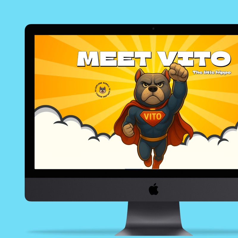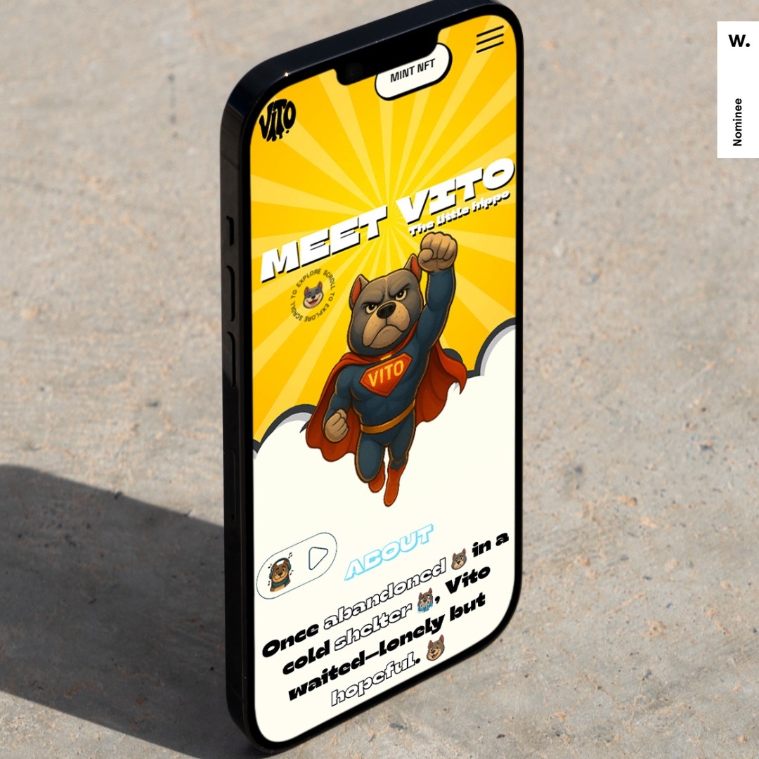 Voor Vito Viktor creëerden we een speelse website rond het verhaal van een asielhond die viraal ging en uitgroeide tot een eigen NFT-project. De site vertelt zijn verhaal op een luchtige, visuele manier en legt uit hoe de opbrengsten worden geschonken aan het goede doel.